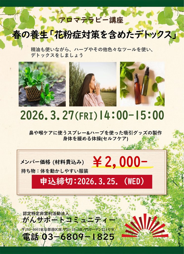 ●申込み:がんサポートコミュニティー事務局までお電話(03-6809-1825)にてお申込みください。